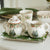 Festive, yet soft, it features majestic snowy evergreens surrounded by enchanting pine boughs and winterberries. All hand painted, no two pieces are alike.