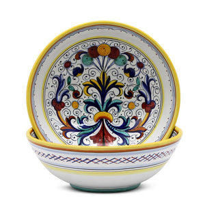 The Ricco design—meaning "rich" in Italian—is Deruta's most iconic and beloved pattern. Artistica proudly offers the true original version of this celebrated motif, which dates back to the 16th century.