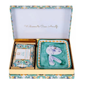 This elegant, glossy Gift Box makes the perfect gift for any special occasion, including Valentine's Day and Christmas. It includes a hand painted ceramic soap dish made in the Amalfi Coast town Vietri Sul Mare and beautifully packed in this exclusive maiolica design. 100% Vegan - Made in Italy