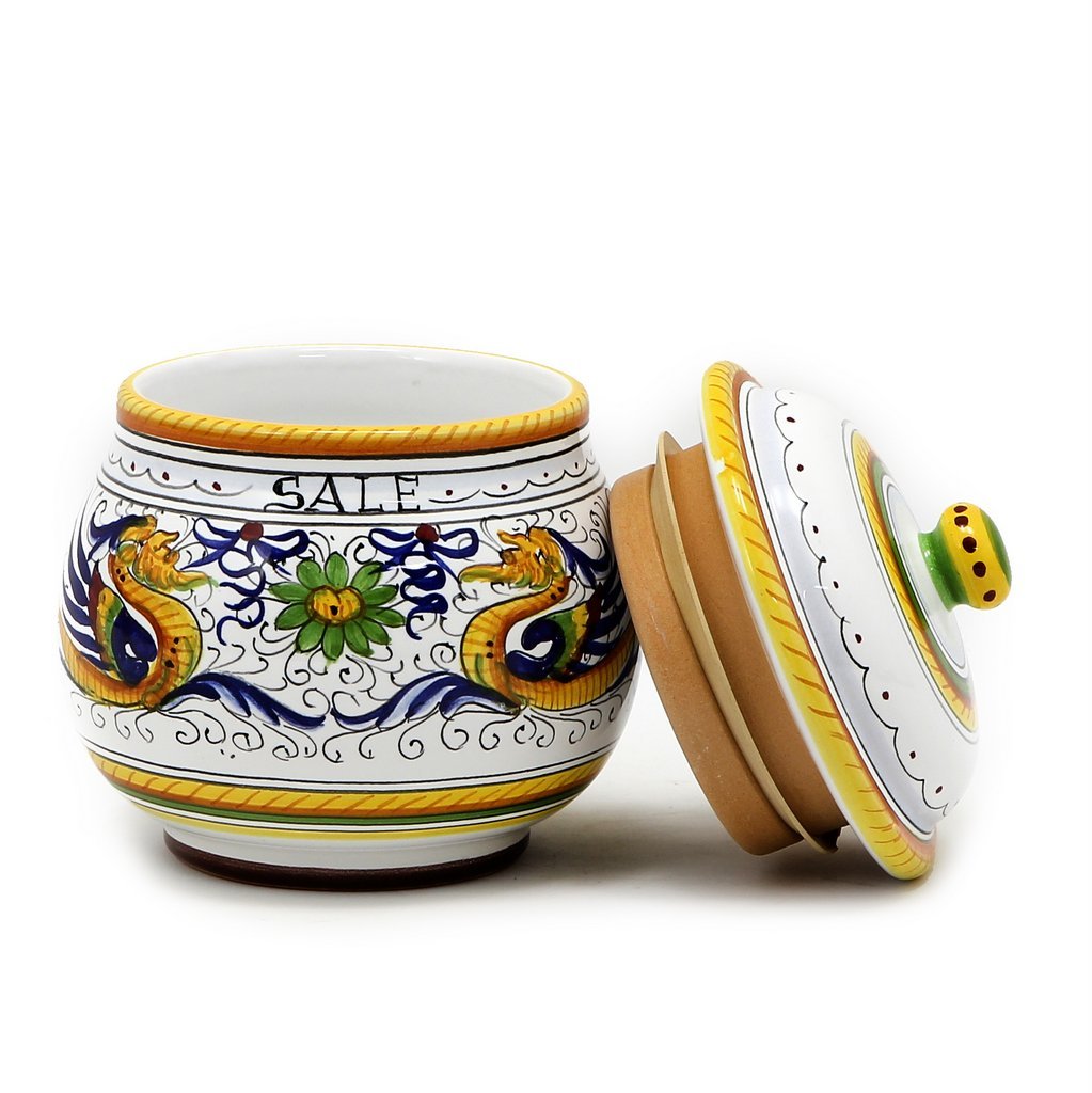 These exquisite pieces showcases the iconic Raffaellesco pattern, a hallmark of Italian majolica from Deruta.