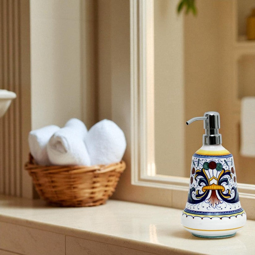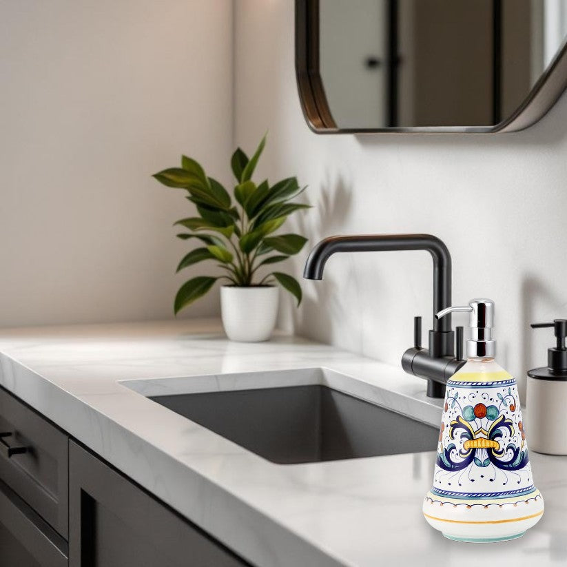The RICCO DERUTA CLASSICO Collection represents our mid-price level of the original Ricco Deruta, the most celebrated Deruta design with origins dating back to the sixteenth century.We do carry three Ricco Deruta versions in three price points; click HERE to view and compare them.