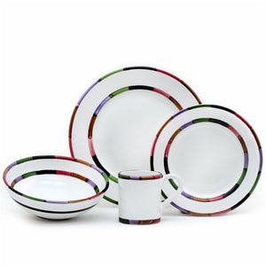 The Bello collection, on the other hand, features colored brush rim strokes in the same striking colors. Each stroke is carefully crafted to create a unique and organic pattern, making each piece a true work of art.