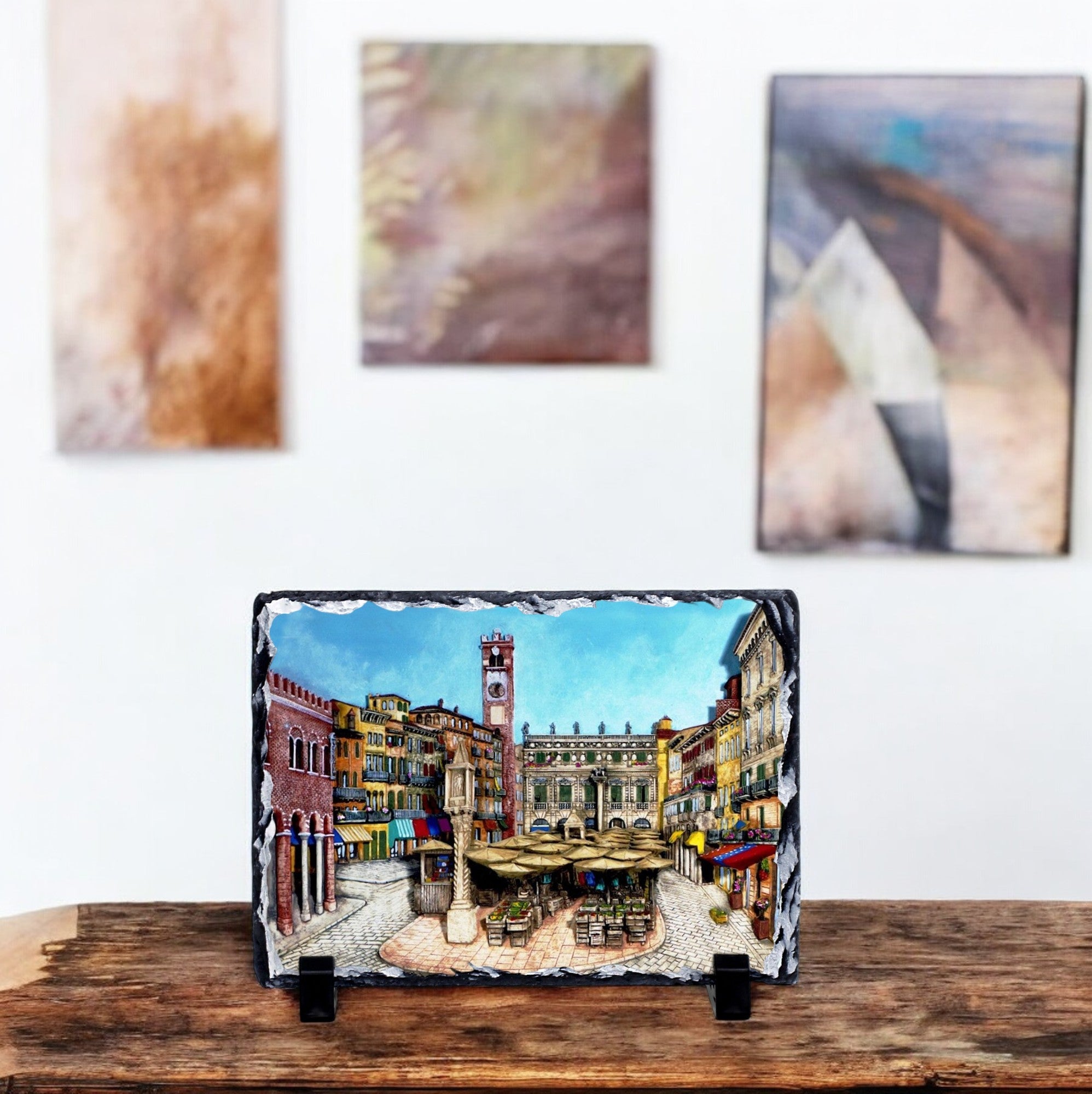 The ROCK SLATE Collection showcases exquisite fresco artworks and stunning bass relief prints capturing iconic Italian streets and views.