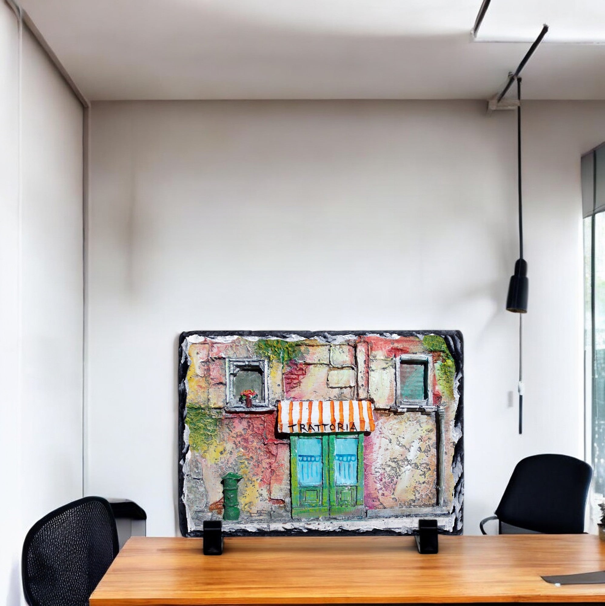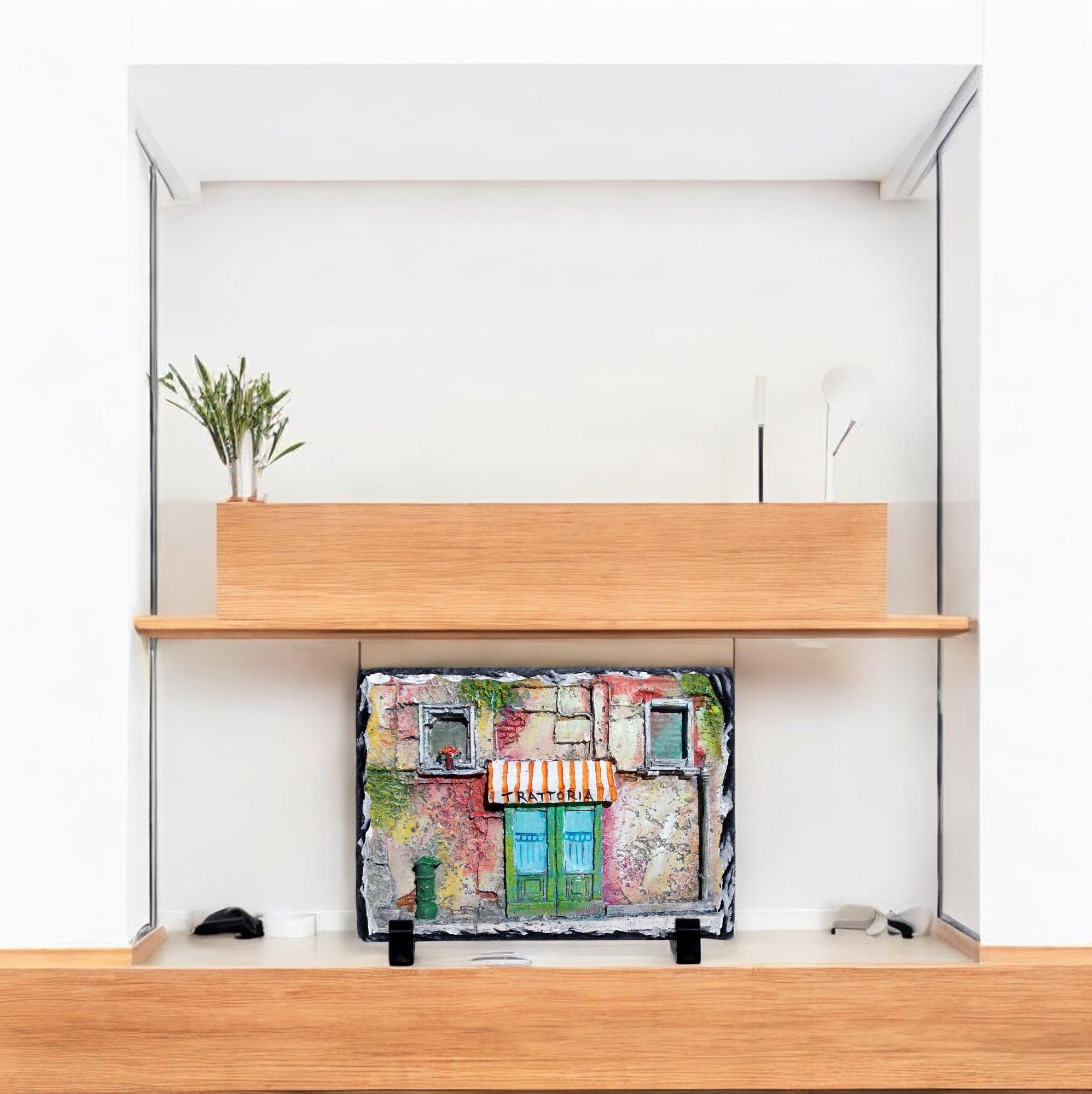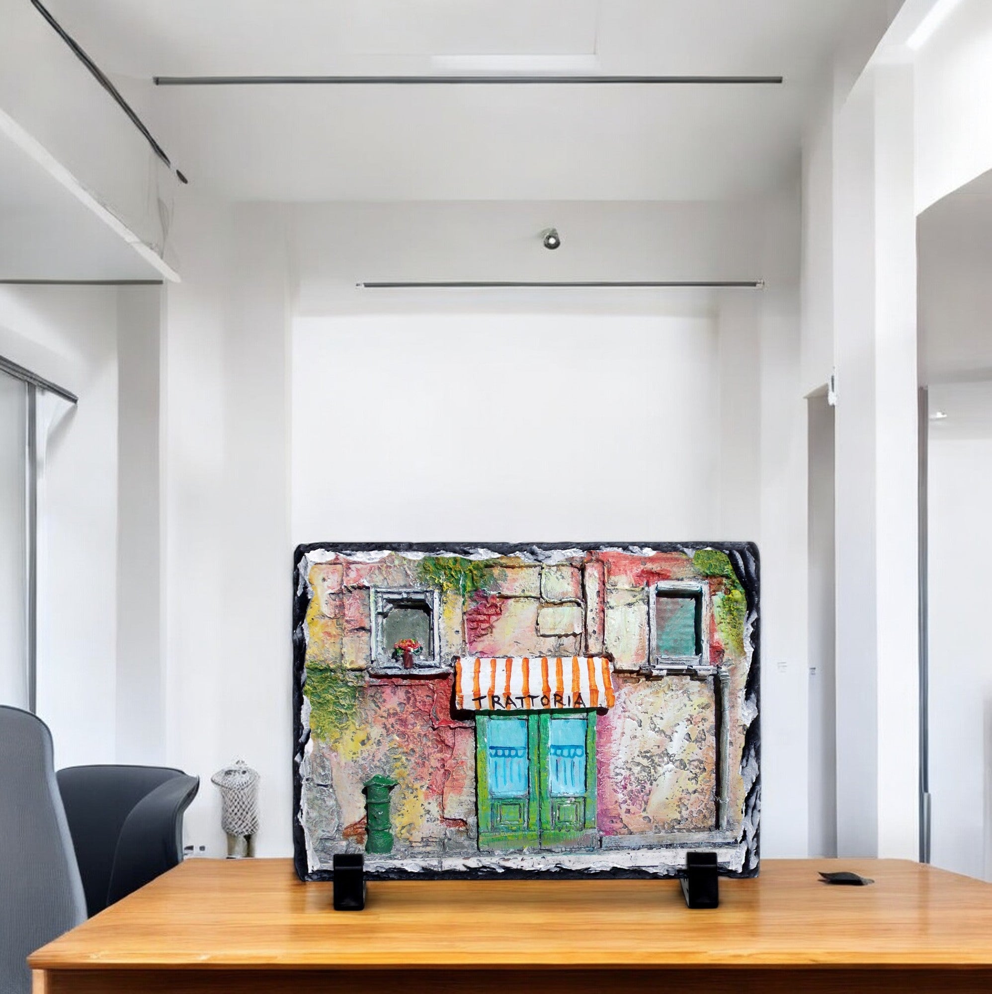 The ROCK SLATE Collection showcases exquisite fresco artworks and stunning bass relief prints capturing iconic Italian streets and views.