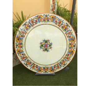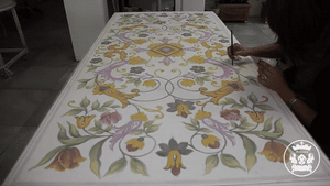 ABOUT OUR TABLES At Artistica, we proudly offer Deruta Italian hand painted stone tables, created from carefully selected slabs of volcanic stones thoroughly selected, refined from impurities and finishes throughout a double fired process.