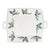 The Lastra Evergreen Handled Square Platter features handpainted greenery and holly berries on a rich white background. The classic holiday color palette feels fresh on the rustic, hand-formed shapes, and the collection is at once elegant, artistic, and joyous.