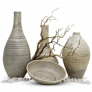 Fully glazed inside and out, the Sabbia pieces make gorgeous accent pieces, but they also hold water, making them suitable for arranging fresh or dried flowers.