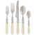 The elegance of mother-of-pearl, the strength of high-grade acrylic and 18/10 stainless steel, plus intricate latticed metalwork on the handles, make Aladdin Lattice a classic VIETRI flatware collection.