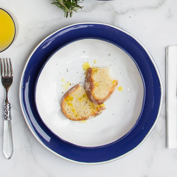 Aurora Collection: Aurora is the result of a beautiful collaboration with maestro artisan Francesco Venzo. Bold tones of white, charcoal, and cobalt intermingle on durable stoneware, creating a subtle chicness for both the table and the home.