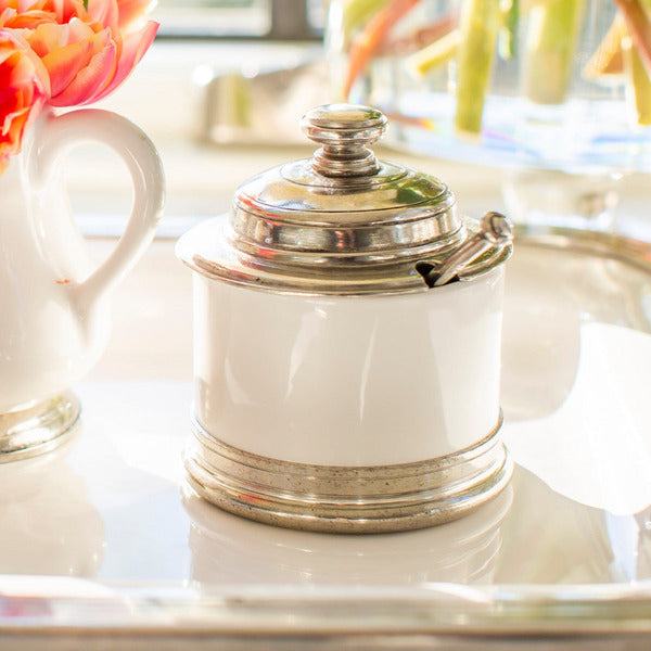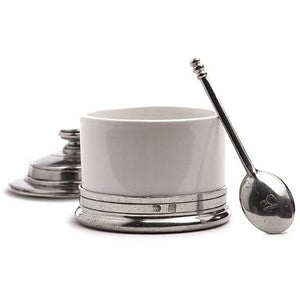 The original pewter and ceramic dinnerware, combines white ceramic with our signature pewter trim. Handcrafted of the highest quality materials, this classic bowl with spoon translates seamlessly from traditional to contemporary, from casual to formal. Italian ceramic and pewter, Hand made in Italy.