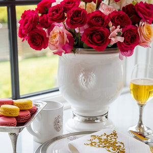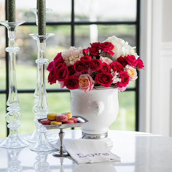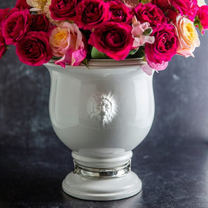 Elevate your home décor with this exquisitely crafted addition to the Tuscan Collection. Featuring the dignified beauty of a pewter band with its stunning presence, this elegant piece is perfect as a vibrant vase or champagne bucket, delivering an undeniably luxurious touch.