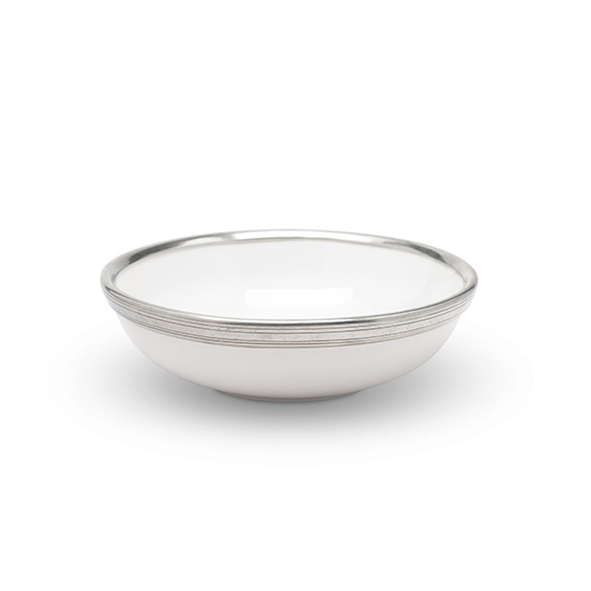 The original pewter and ceramic dinnerware, combines white ceramic with our signature pewter trim. Handcrafted of the highest quality materials, this classic bowl translates seamlessly from traditional to contemporary, from casual to formal. Italian ceramic and pewter, Hand made in Italy.