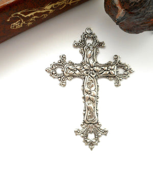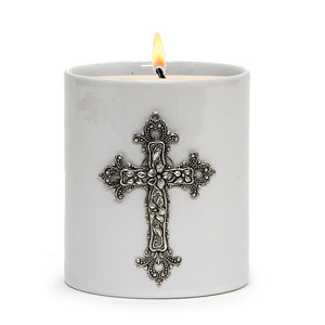 MONDIAL CANDLES: BIANCA Collection - Porcelain Container Candle with Antique Silver Crucifix