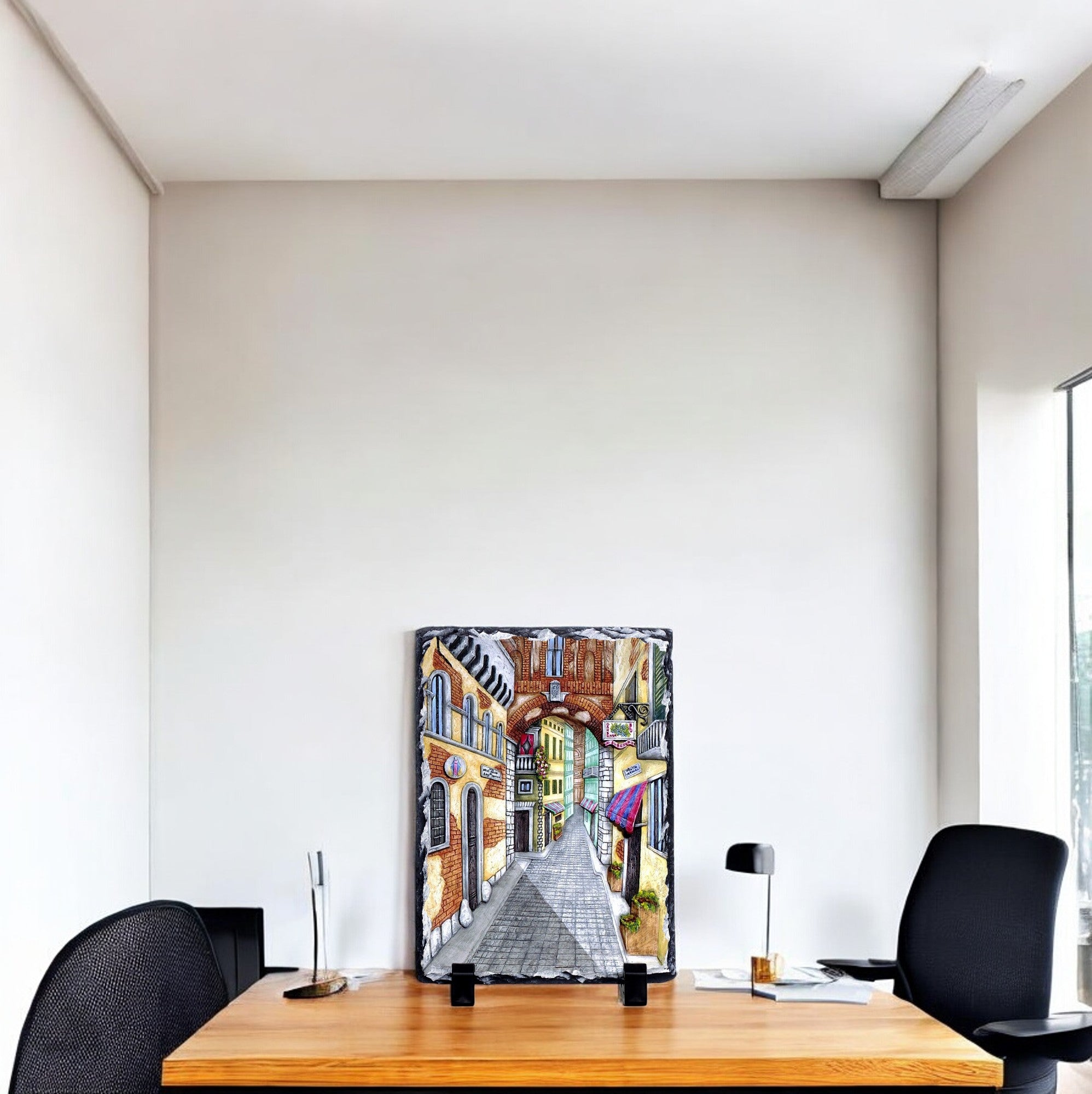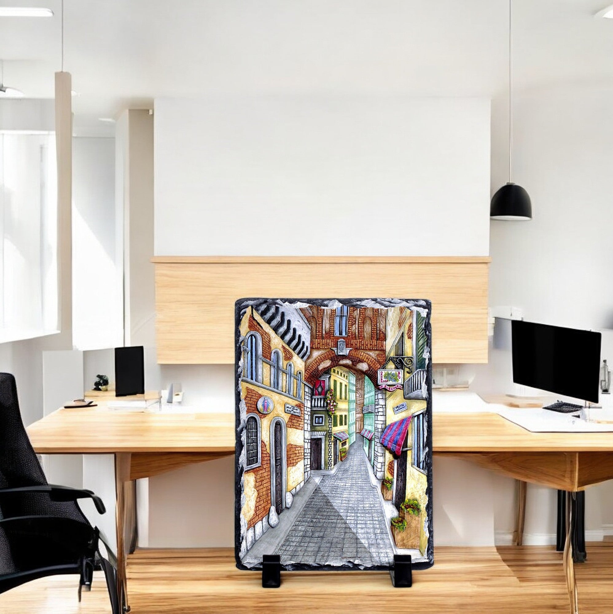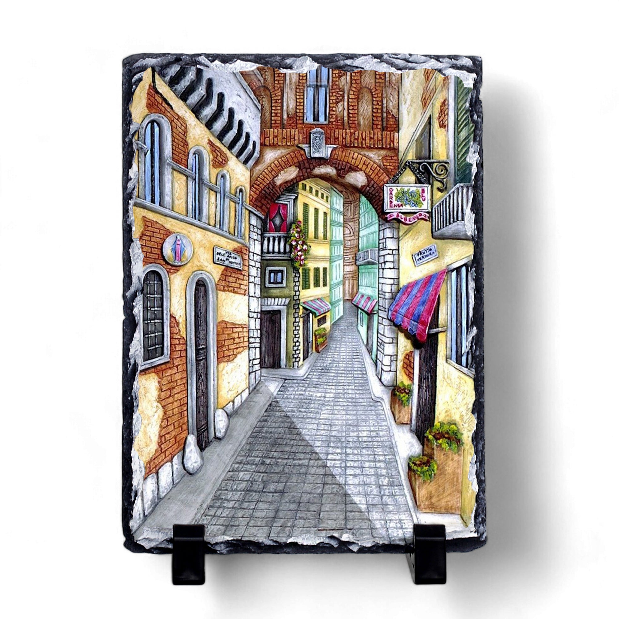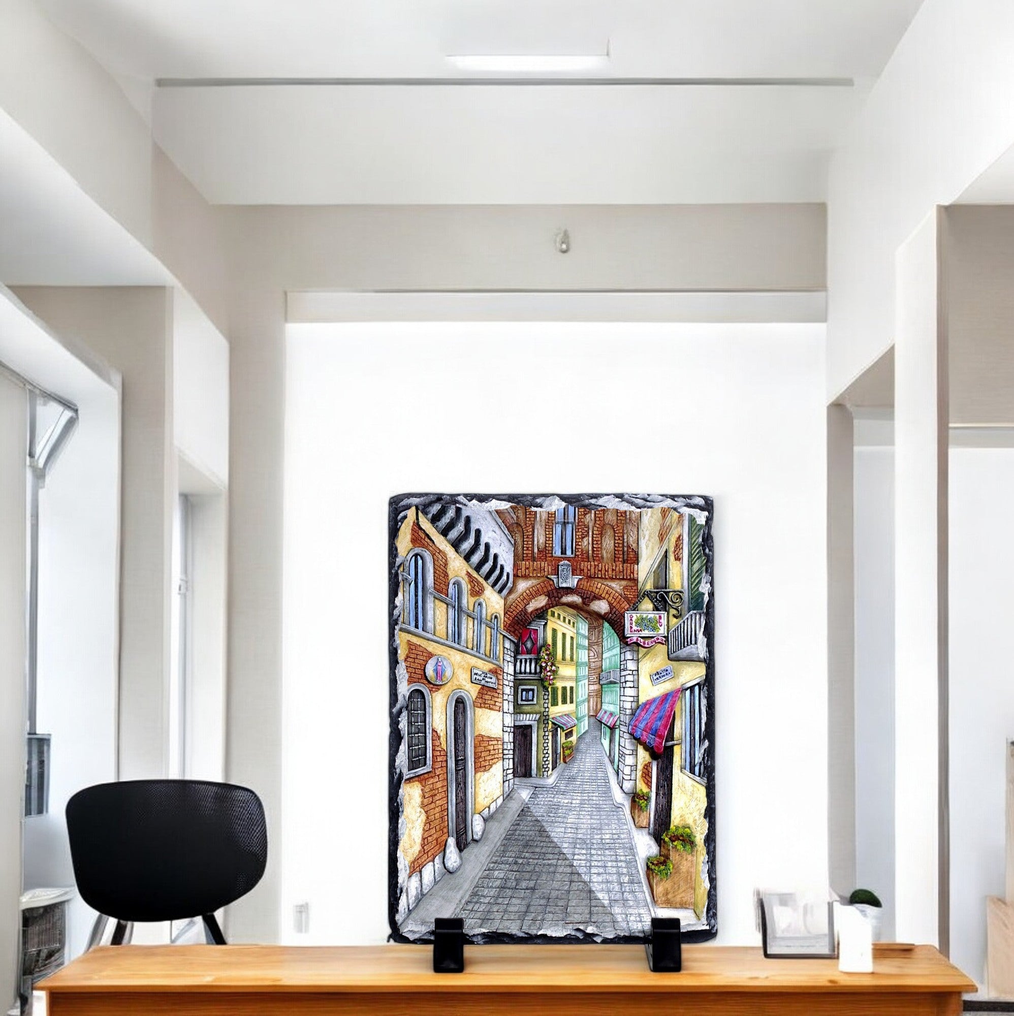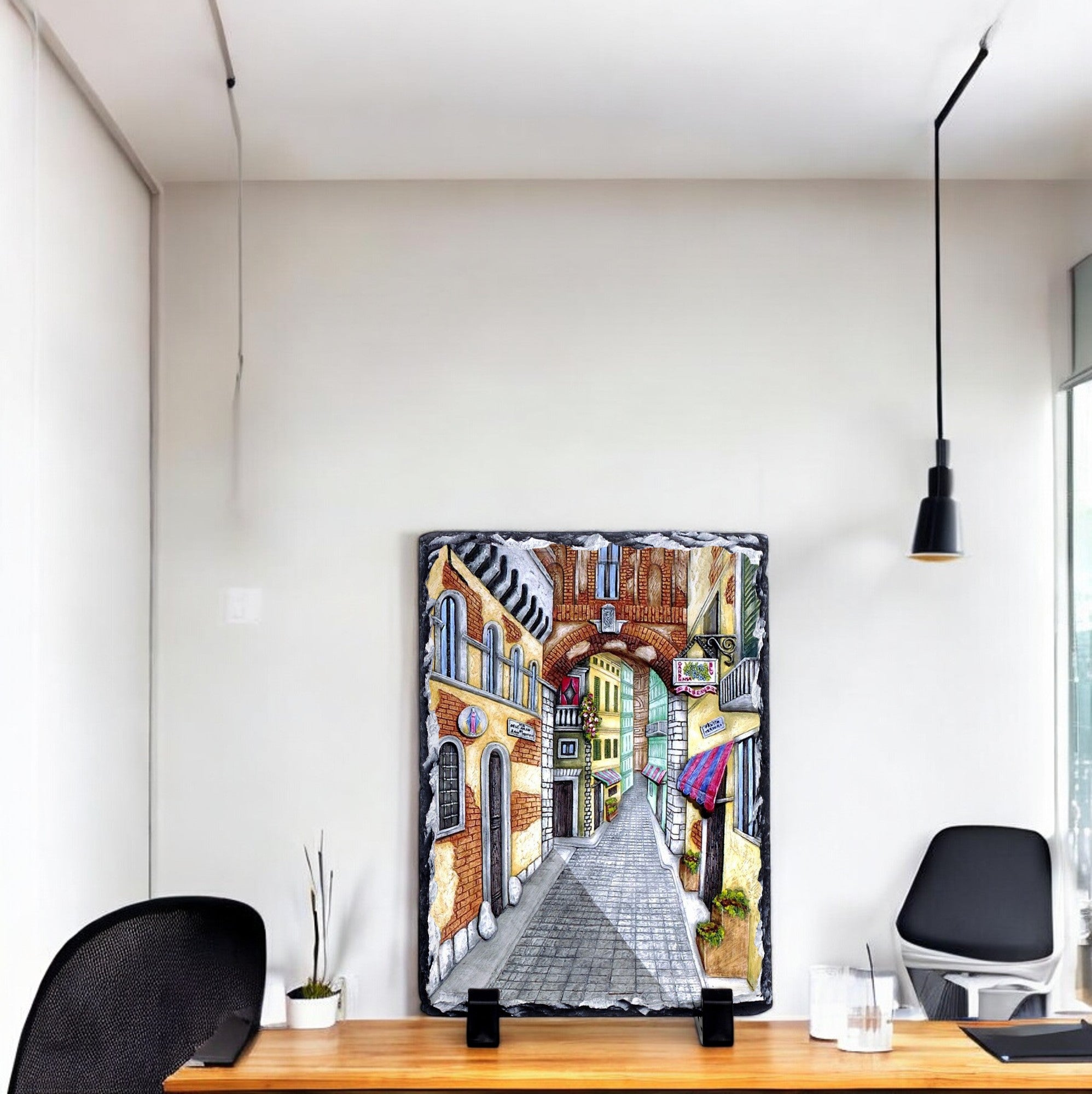 The ROCK SLATE Collection showcases exquisite fresco artworks and stunning bass relief prints capturing iconic Italian streets and views.