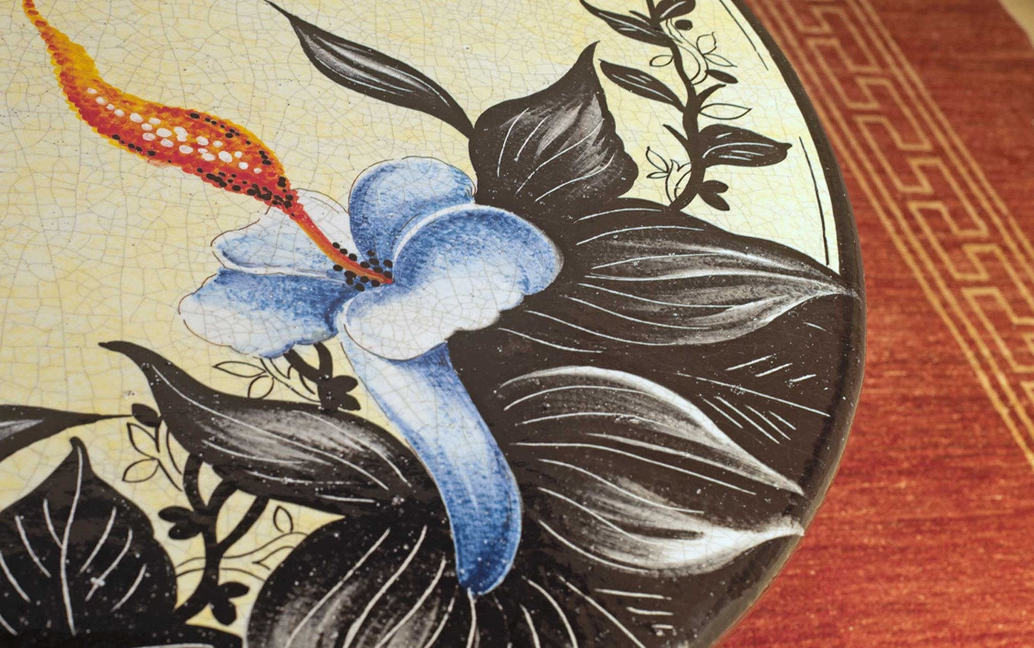 ABOUT OUR TABLES At Artistica, we proudly offer Deruta Italian hand painted stone tables, created from carefully selected slabs of volcanic stones thoroughly selected, refined from impurities and finishes throughout a double fired process.