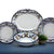 The scalloped rim plates are a particular highlight of the collection. They feature a traditional royal blue, yellow gold, and emerald green color scheme.