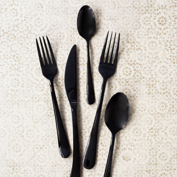 SETTIMOCIELO Collection by Vietri (c). Soft, elegant lines grace each piece of Settimocielo. Translated seventh heaven, an emphasis on balance and comfort in use is prevalent by the design of a hollow-handled knife with a forged blade for cutting precision. Settimocielo features an extended line of accessories including a Four Piece Steak Knife Set, Three Piece Cheese Knife Set, Serving Set, Sauce Ladle, Spreader and Demitasse Spoon. Size: 5 PCS PLACE SETTING